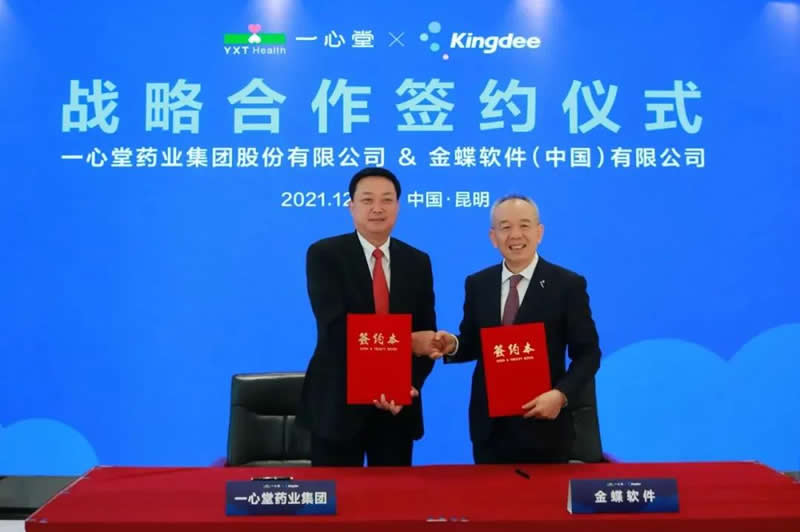 2021年12月29日,金蝶软件(中国)有限公司(以下简称“金蝶”)与一心堂药业集团股份有限公司(以下简称“一心堂”)在昆明签署数字化战略合作协议。一心堂董事长阮鸿献、金蝶集团董事会主席兼CEO徐少春出席该签约仪式。